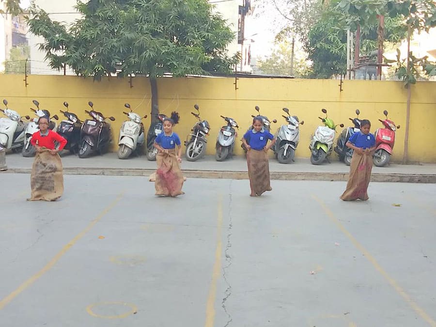 Children enjoy music and fun with their grandparents on the occasion of Dada-Dadi get together.